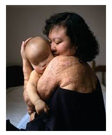 Kim remained hospitalized for 14 months, and underwent 17 surgical procedures, until she recovered from the burns.