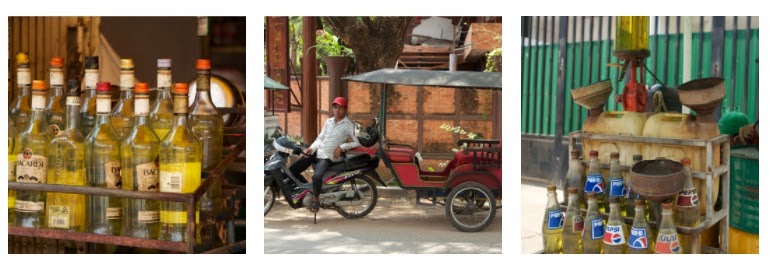 The main mode of transportation is the scooter and tuk tuk, a covered trailer attached to scooters similar to rickshaws. Pop up gas stations dot sidewalks, their petrol held in reused rum, whiskey and soda bottles, probably so customers can see exactly what they’re buying.