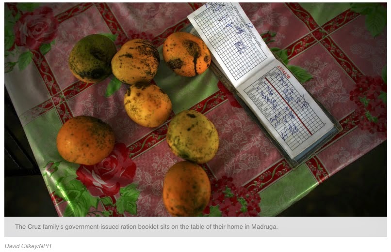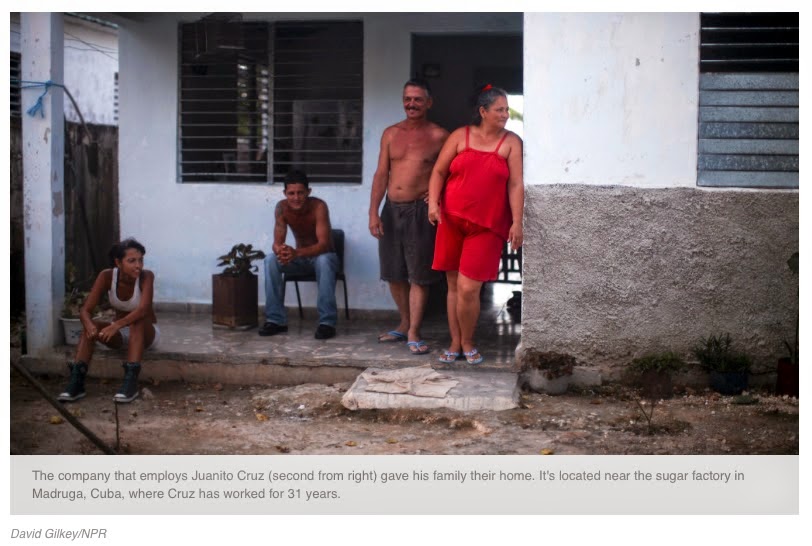 Cruz makes about $40 a month. He shows us his government rations booklet, and tells us his sugar mill income, combined with his monthly rations of rice, beans, coffee and other staple foods, let him live comfortably in this three-bedroom house with his wife and five children.