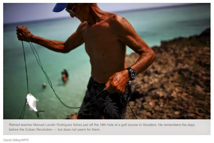 Every morning, Manuel Landin Rodriguez walks past the luxurious state-owned Xanadu Mansion hotel and crosses its neatly trimmed golf course all the way to its edge. He camps out on the cliff overlooking the turquoise Caribbean waters that make the resort town of Varadero on Cuba’s northern coast so famous.
